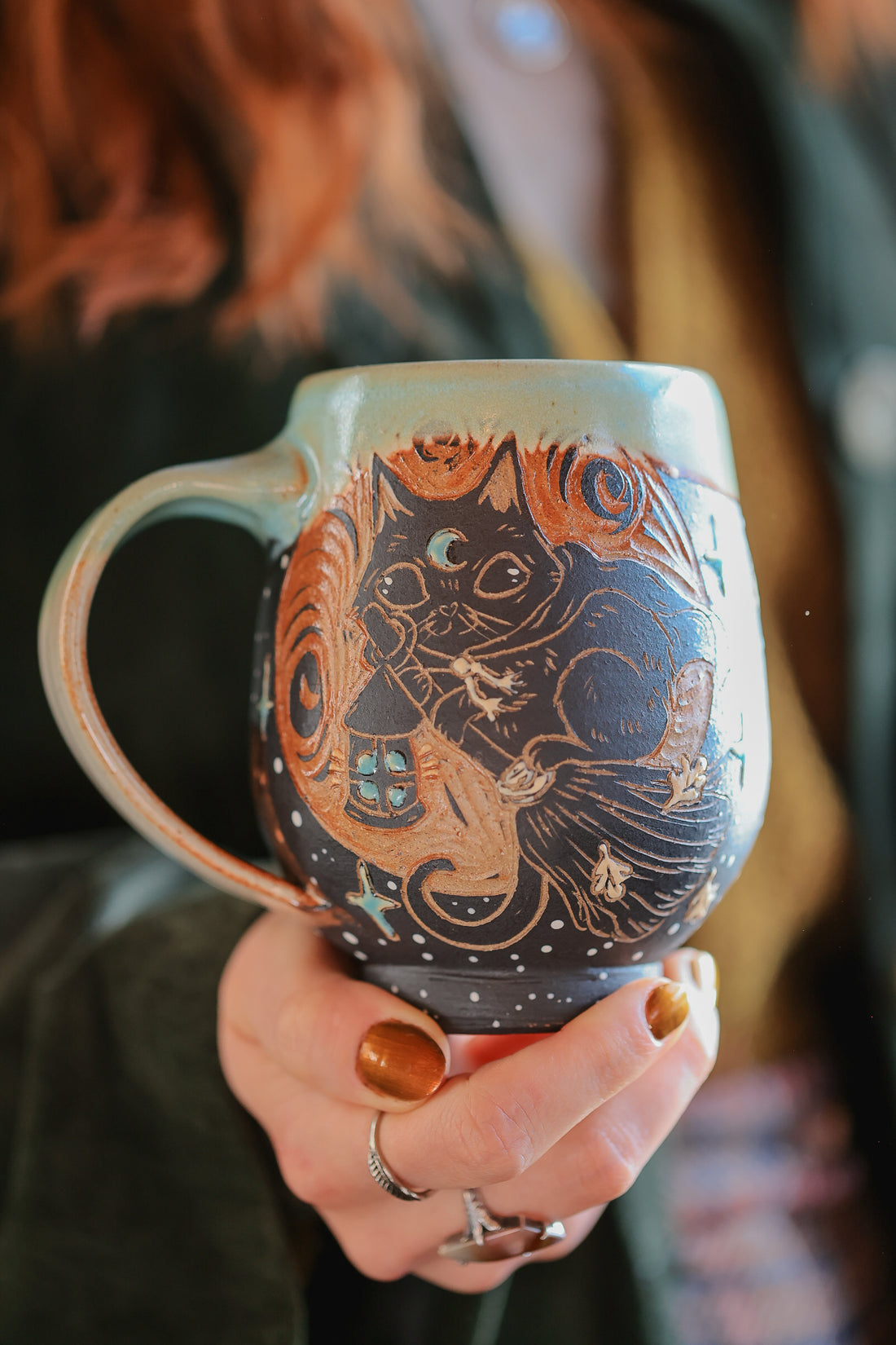 #24 Moonlit Kitty Witch Mug 17 oz- Regular price