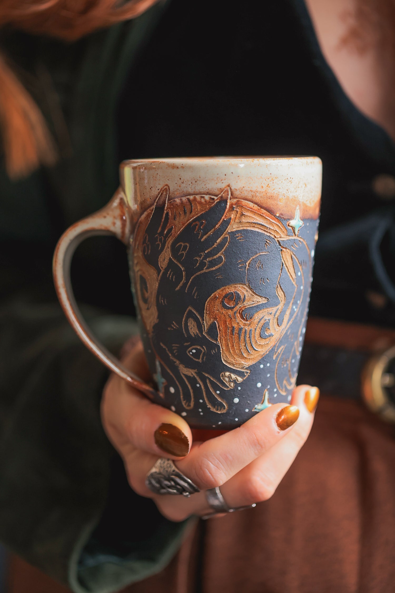 #27 Moonlit Winged Wolf Mug 12 oz