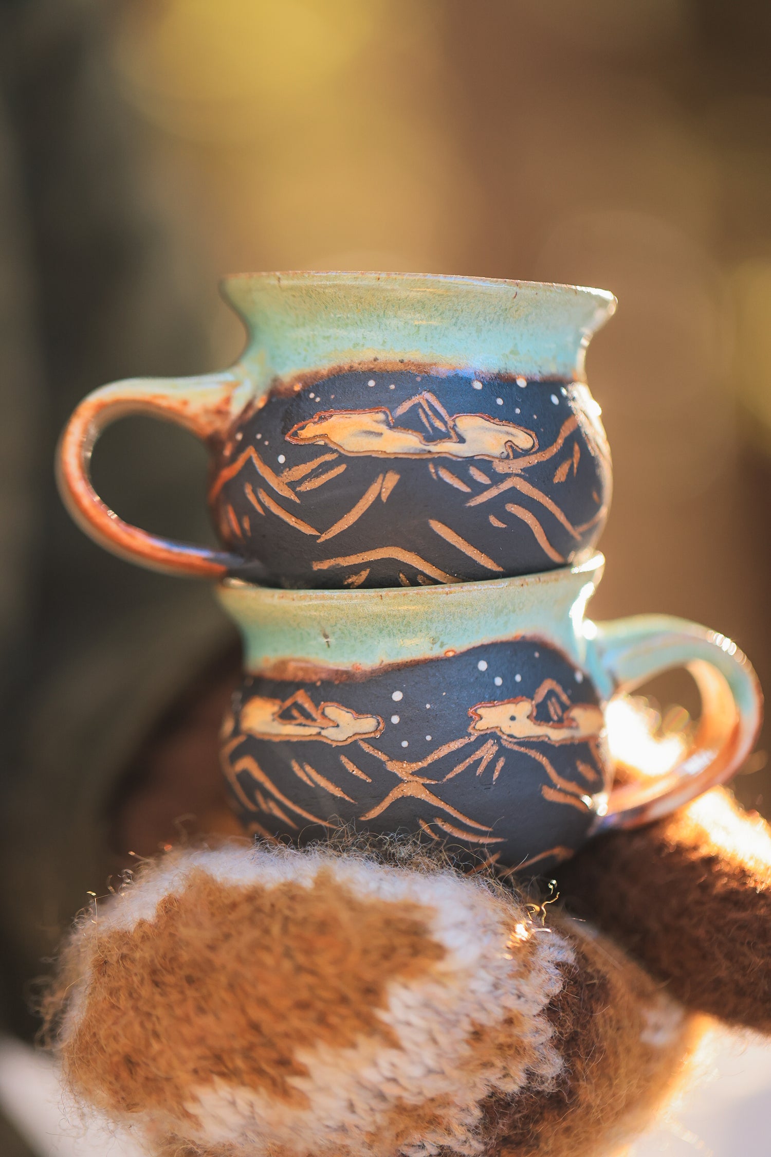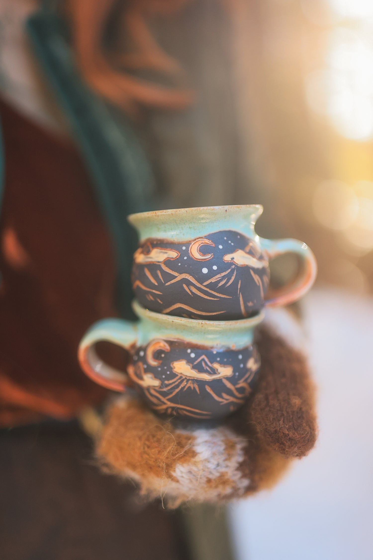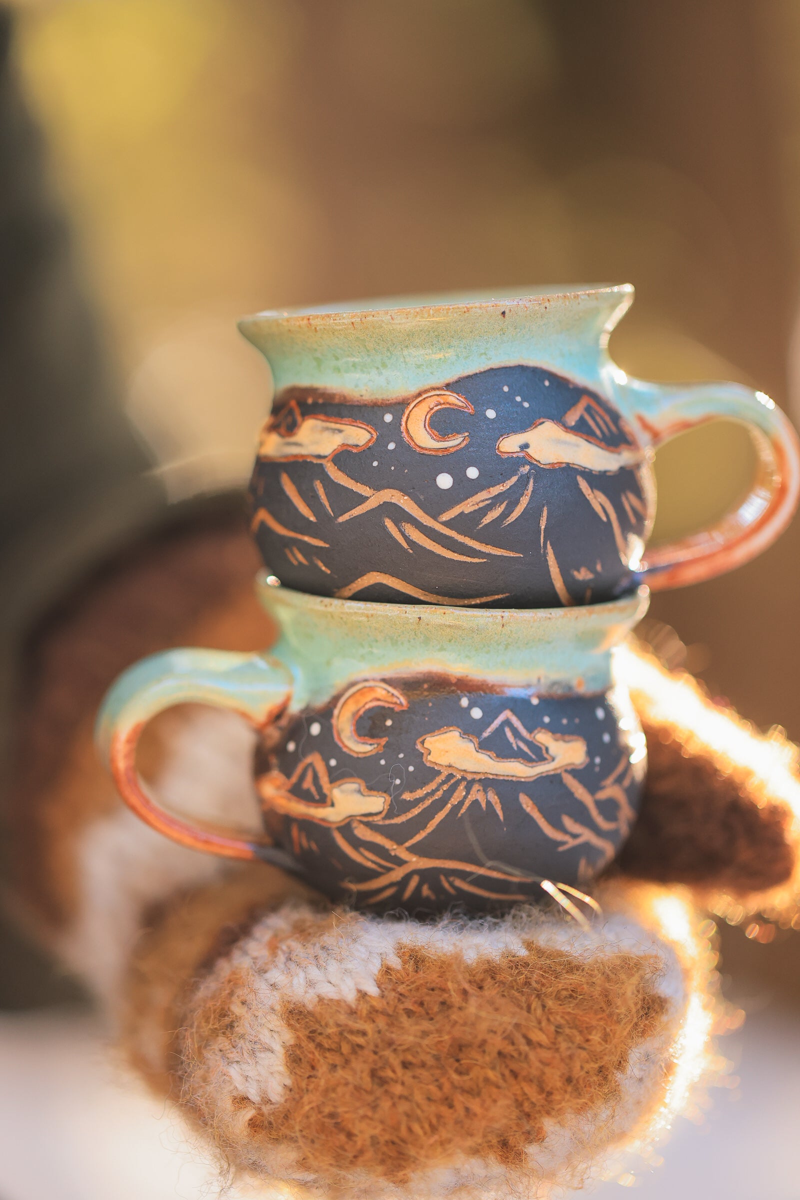 hand painted and carved sgraffito motifs