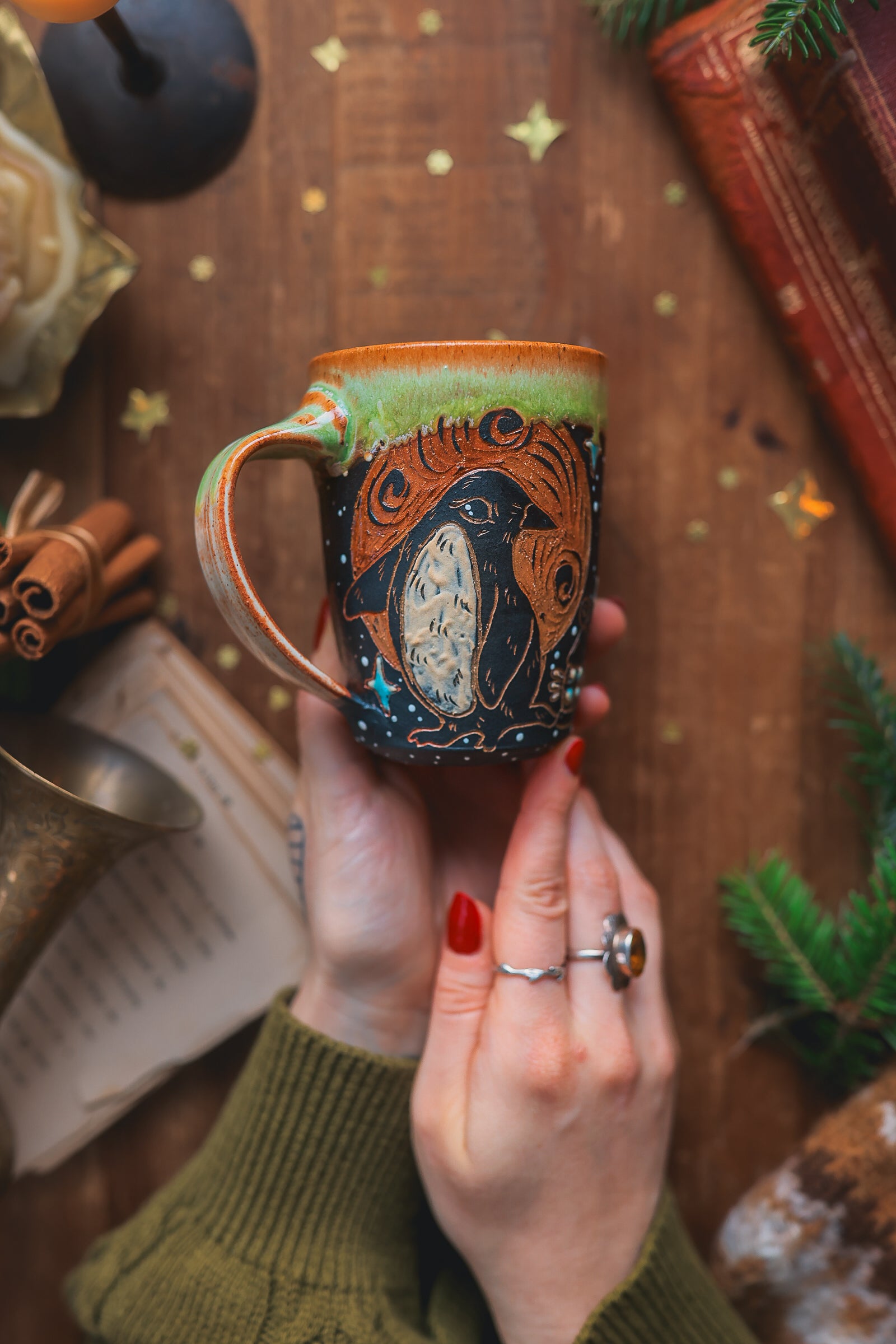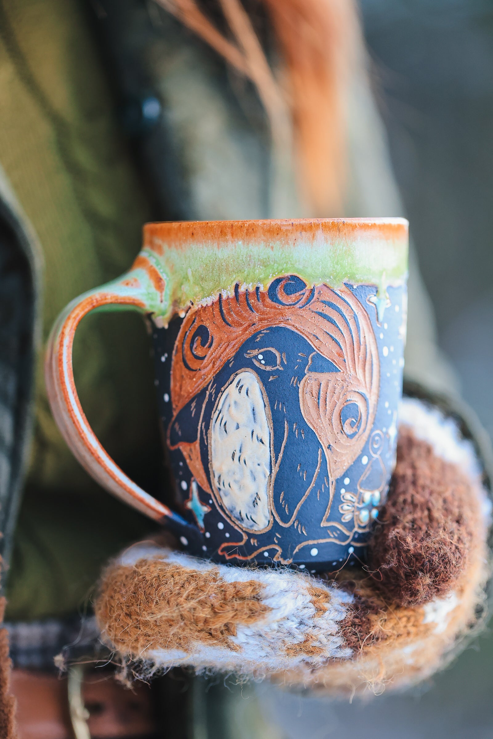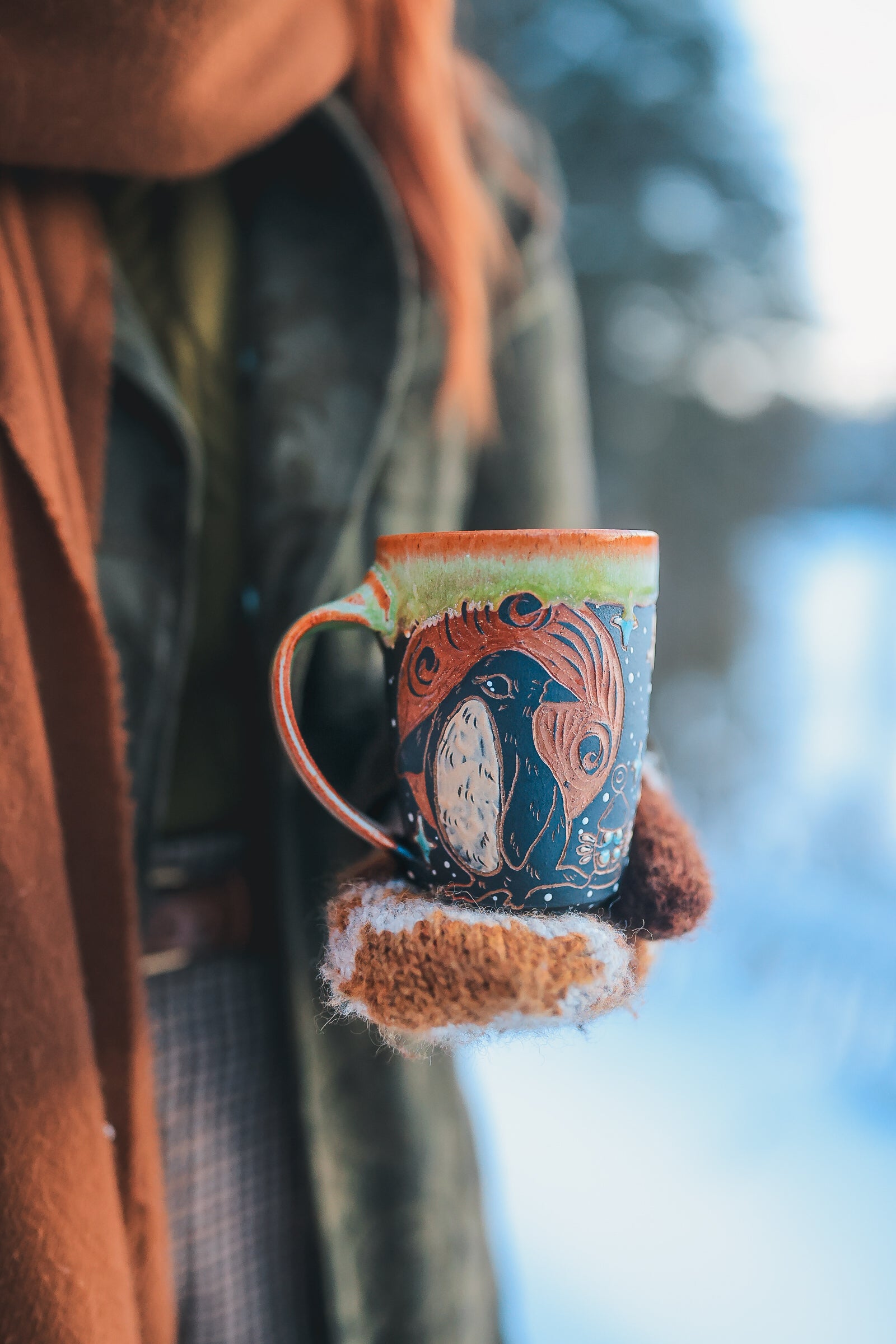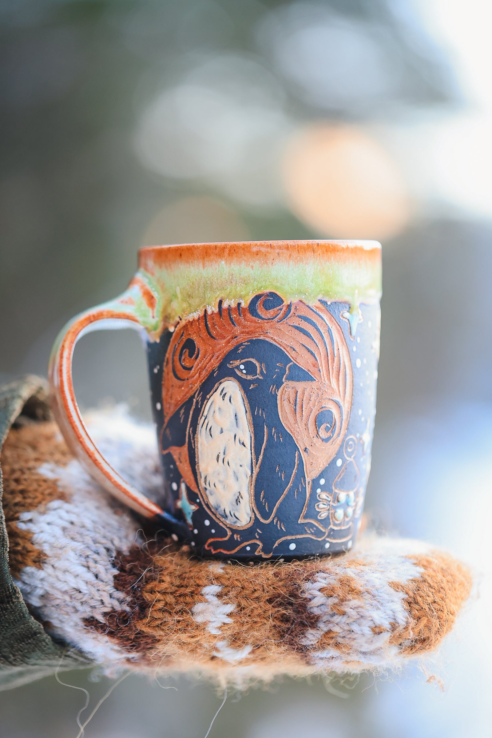 hand painted and carved sgraffito motifs