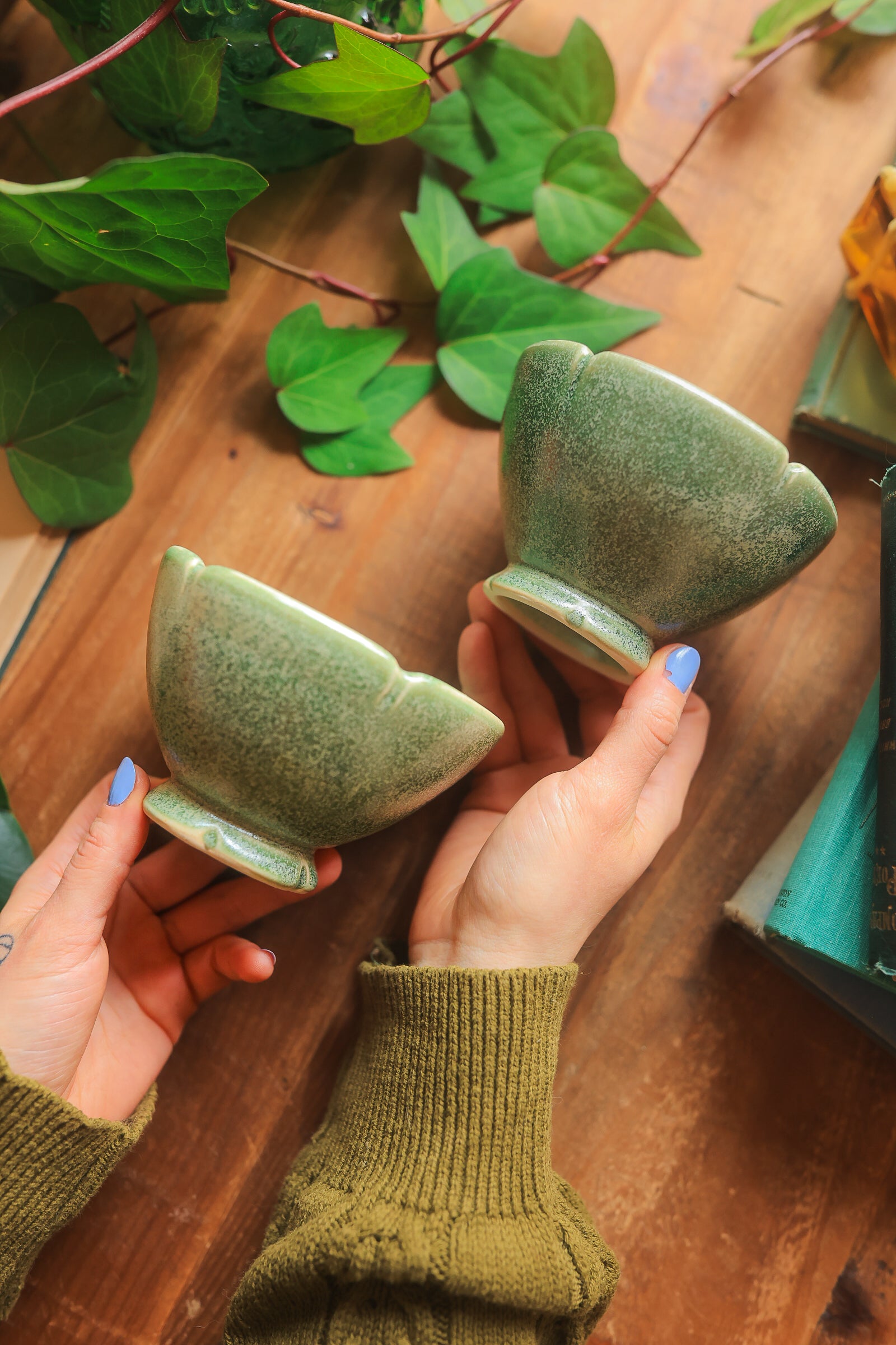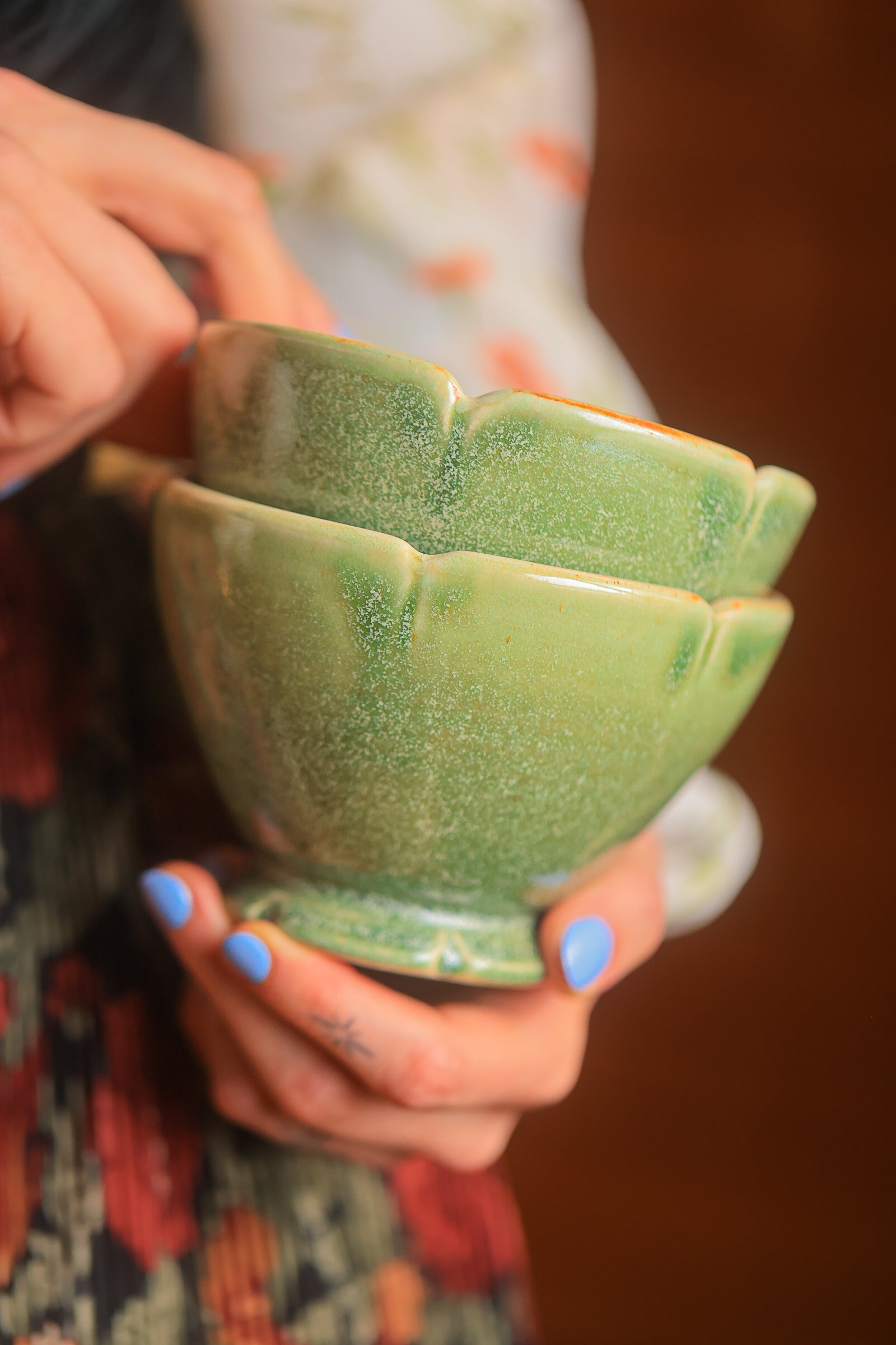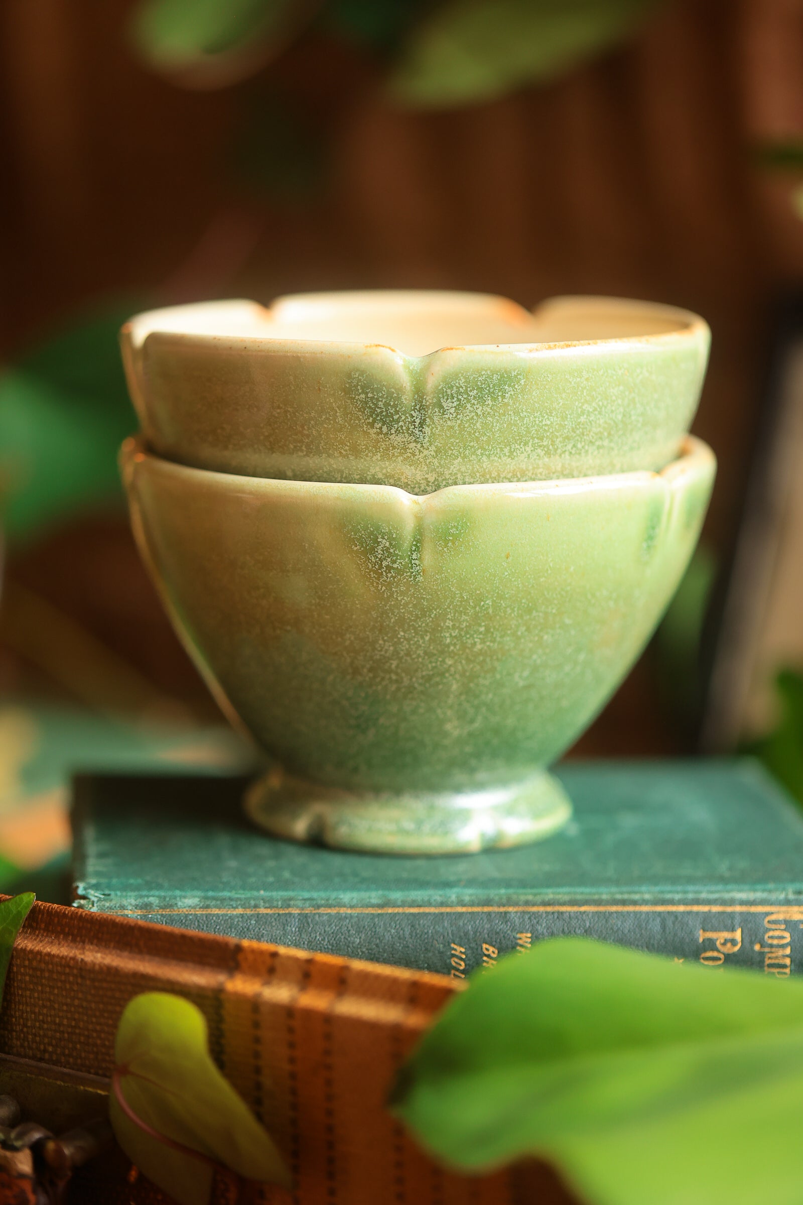 #88 Pair of Lotus Folkware Bowls in Moss