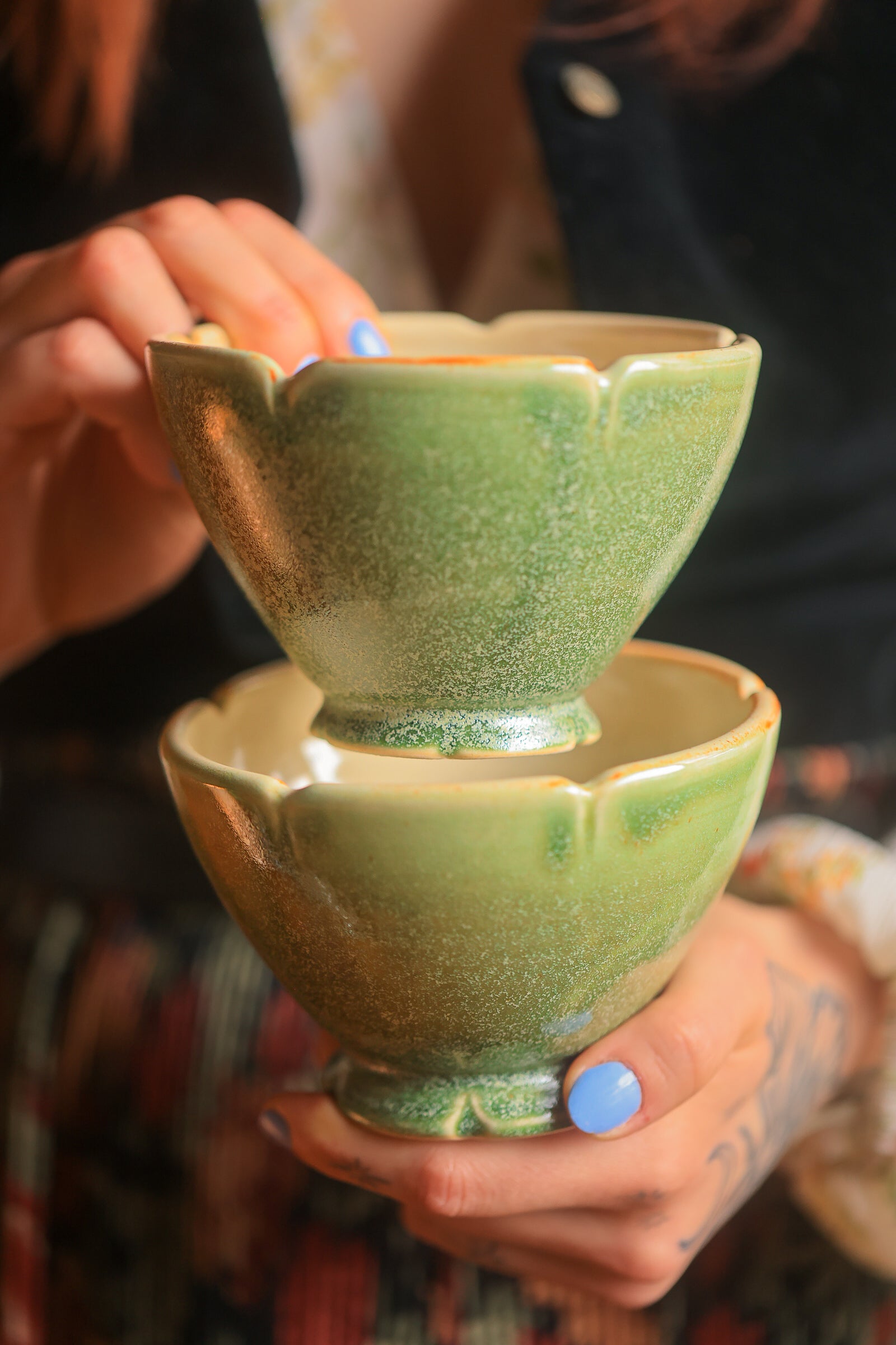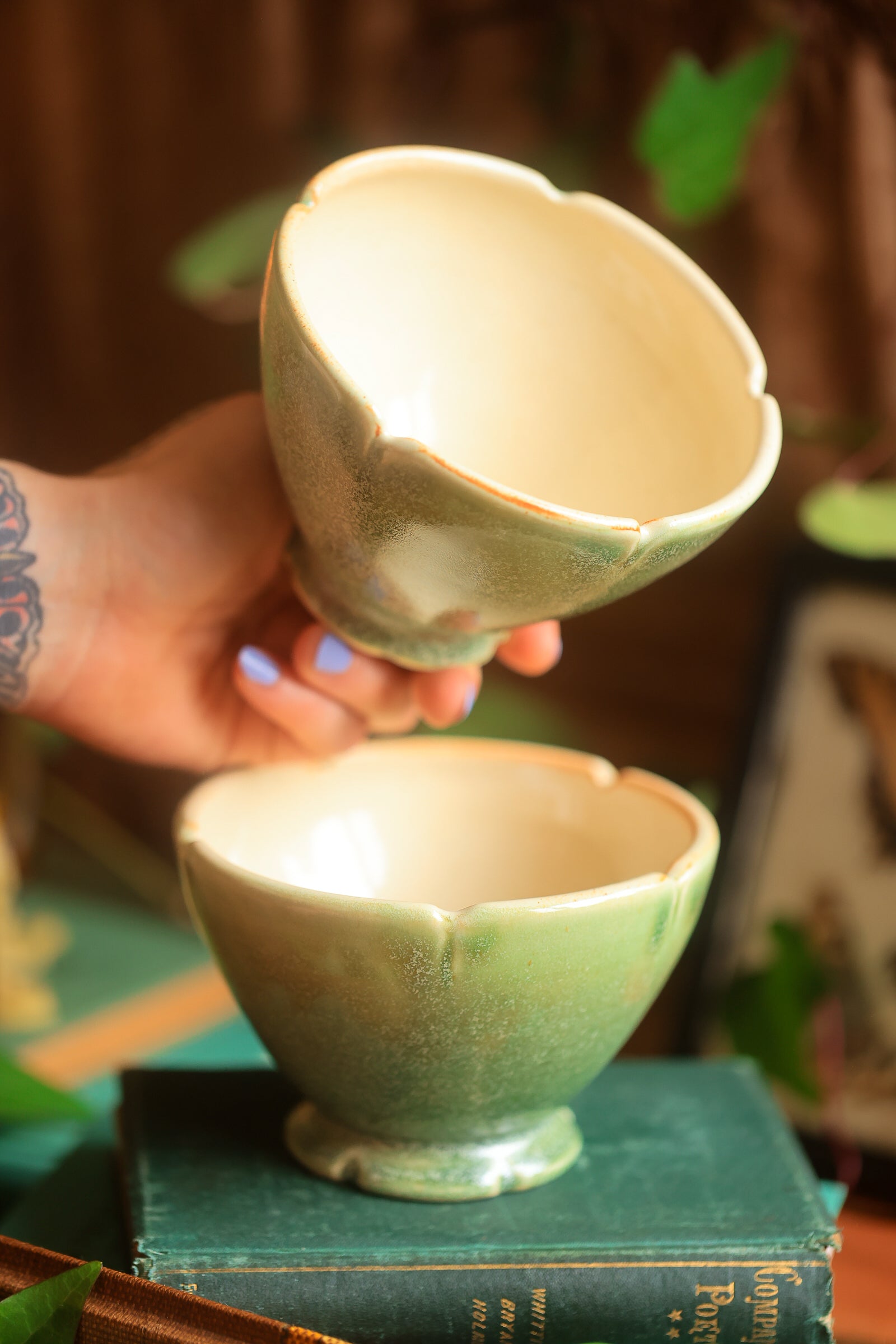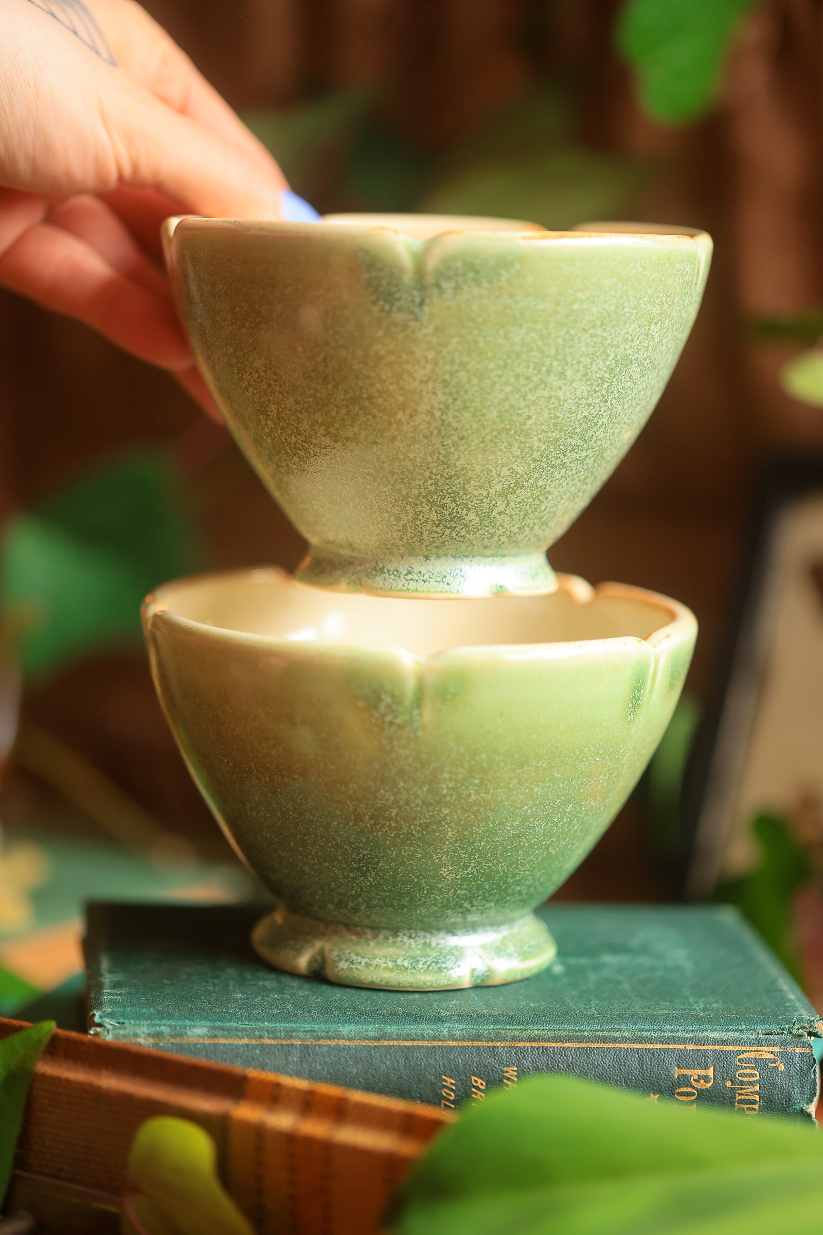 #88 Pair of Lotus Folkware Bowls in Moss